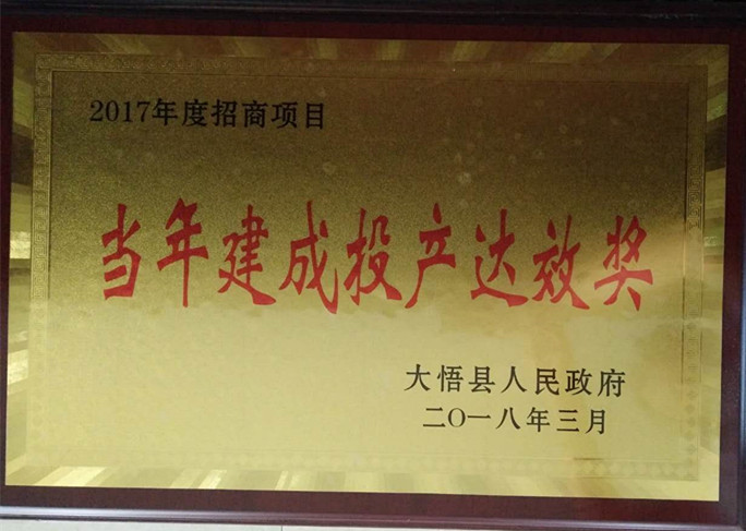 2017年度建成投產(chǎn)達(dá)效獎(jiǎng)證書