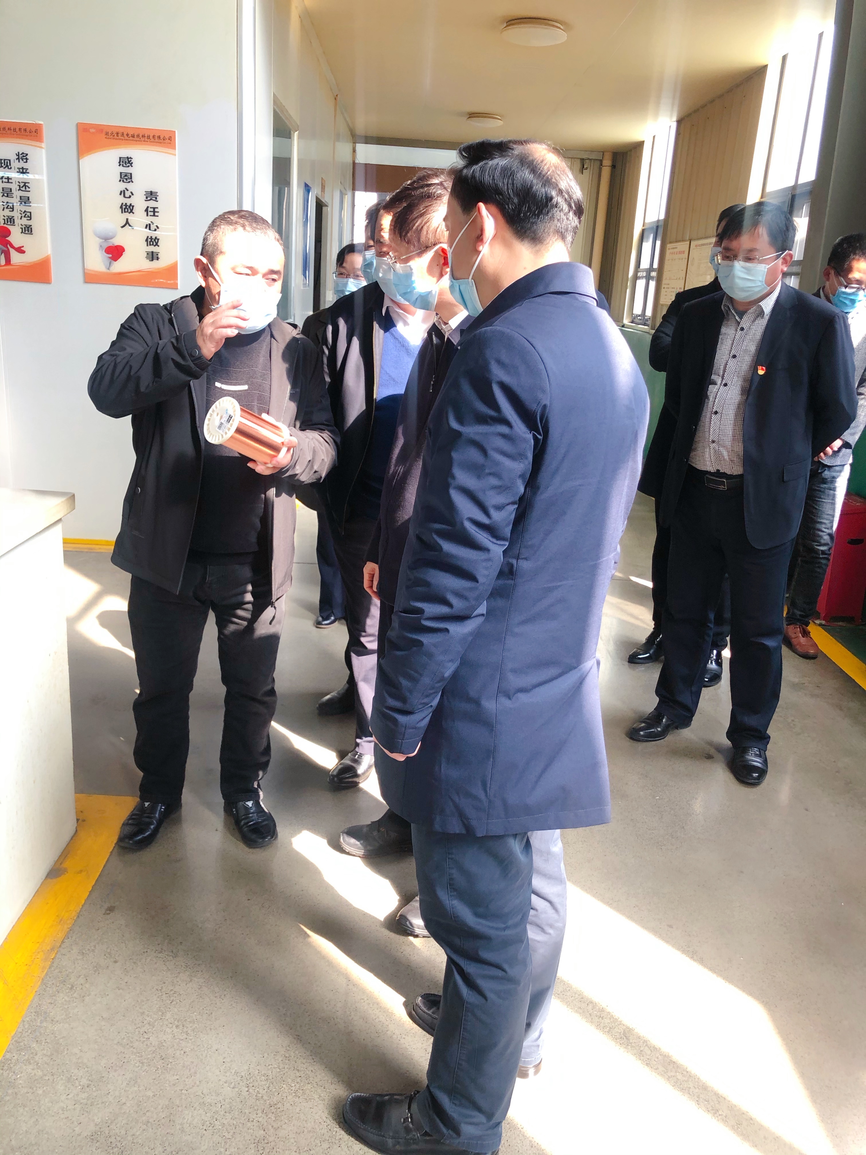 2021年3月4日下午,湖北省統(tǒng)計局局長朱慧一行來悟調(diào)研。 14:40 到湖北首通電磁線科技股份有限公司調(diào)研;(市、縣陪同領(lǐng)導:熊征宇、鄧道偉、余德芳,余海群、胡啟明、付文廣、程文正)。統(tǒng)計局局長朱慧和市縣領(lǐng)導非常關(guān)心首通公司牛年 企業(yè)開工情況及開工運作、計劃高度關(guān)注。同時對我們公司規(guī)模,產(chǎn)值、環(huán)境等等予以高度好評。